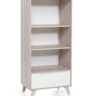 Коллекция Mette – это новый взгляд на стиль 60-х годов. Элегантность мебели на высоких ножках подчеркивает сочетание свежего белого цвета с натуральными древесными оттенками.Открытые полки в шкафу - дизайнерское решение, которое придает воздушности крупным элементам коллекции. Четкие линии, белоснежный цвет фасадов и боковины цвета дуба - Mette создает спокойный цветовой тон, контрастирующий с яркостью детских игр.